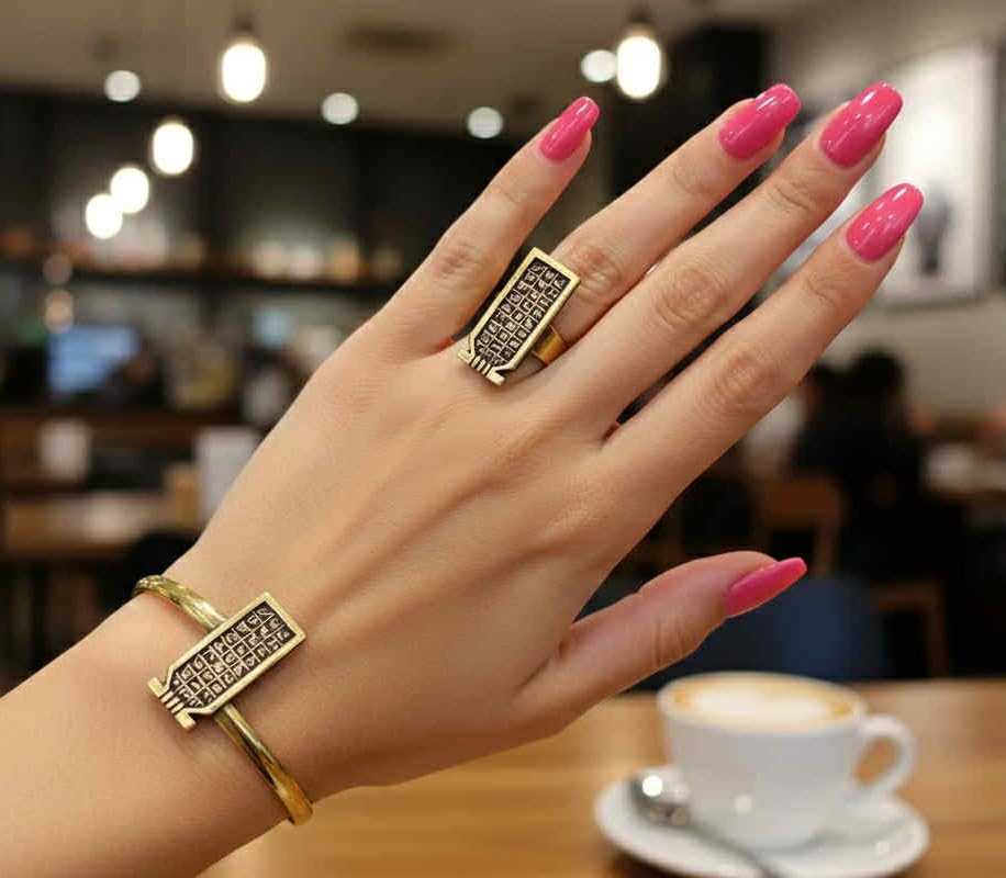 Generic - أسورة وخاتم نحاس موديل فرعوني مزخرف، مقاس واحد