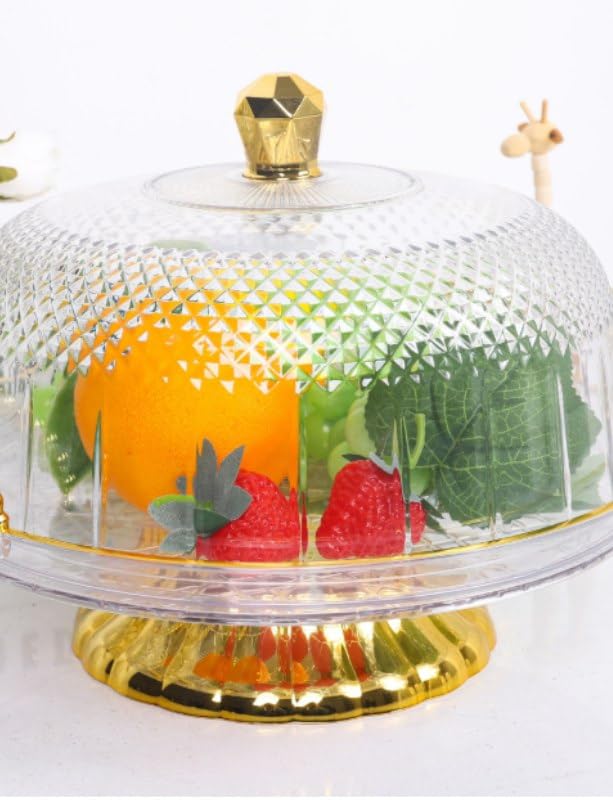 - ستاند تورته اكريلك دوار بغطاء استاند دوار بيلف 360 درجة عملي جدا لتزيين الكيك وحفظ التورتة و الجاتوه يتميز بغطاء اكريلك كريستال ومقبض جولد مميز
