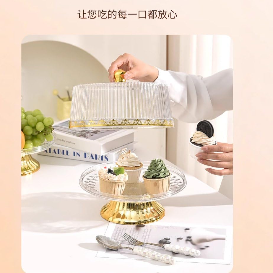 Generic - استاند تورته اكريلك دوار بغطاء لتزيين الكيك وحفظ التورتة و الجاتوه