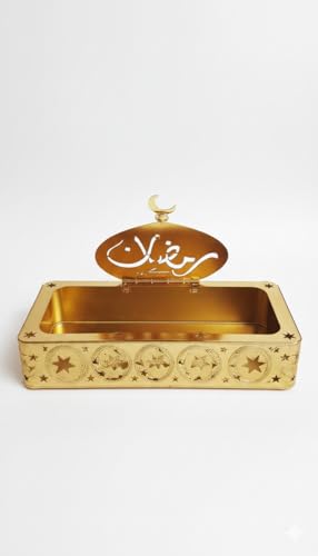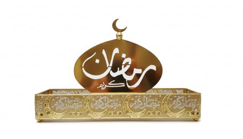 Generic - استاند مزخرف اسلاميخمات عاليه الجوده يضيف جوًا احتفاليًا ويجمع بين التراث والأناقة في مساحتك على شكل هلال وكتابه رمضان كريم بلون دهبى