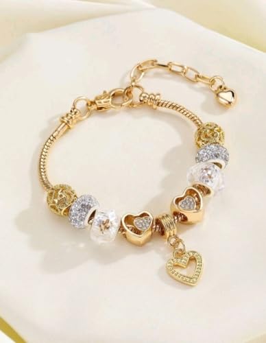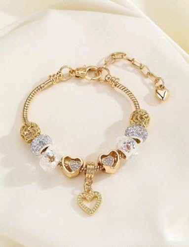Generic - اسورة نسائية على شكل قلب صغير من الخرز الساحر "حب" بقلادة حب لامعة، مناسب للزوجين الرومانسيين