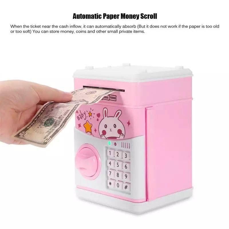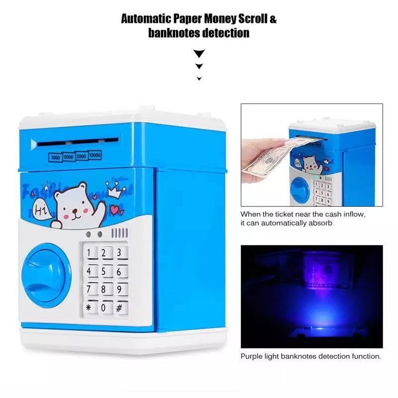 - الحصاله الكترونيه الحصاله الالكترونيه زى الخزنه بالضبط تعمل- بنظام- الحمايه الرقم السرى عشان تحفظ النقود والفواتير بتسحب- العمله- الورقيه- بطريقه ذكيه فيها نغمات موسيقيه جميله