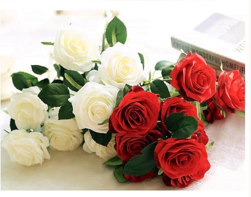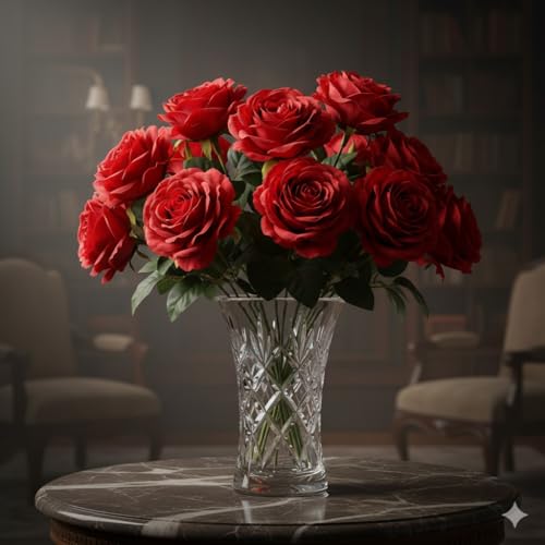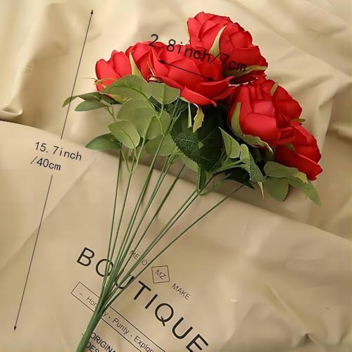 Generic - باقة ورد صناعية من الحرير (بدون فازة)، مناسبة للحفلات والمنزل وديكور الزفاف (أحمر)