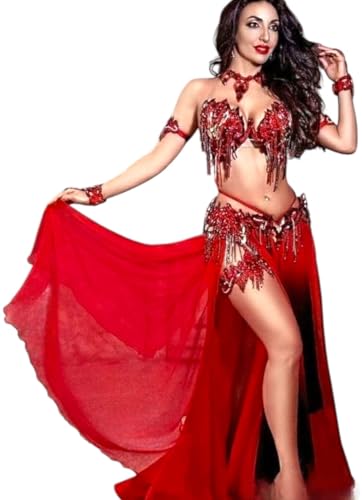Generic - بدلة رقص شرقي للنساء، باللون الأحمر، مقاس حر، بتصميم رقص شرقي