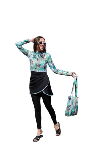 Generic - مايوه حريمي بوركيني (شرعي ) - خامه دايفينج - مكون من خمس قطع ( جامبسوت كت + جيب + بلرو قصير بكم + تربون + شنطه )
