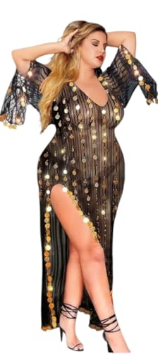 Generic - بدله وجلابيه رقص شرقي اسود مزين بترتر دهبي حجم كبير بيج سايز