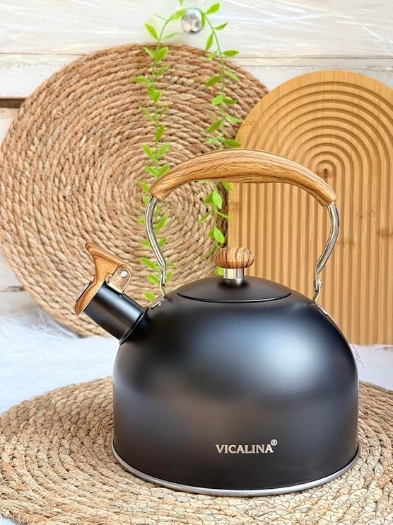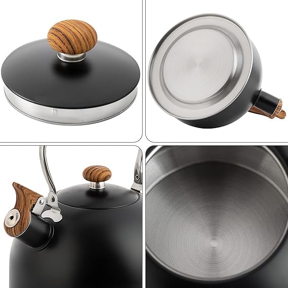 Generic - براد شاى استانلس ستيل بيد خشب - مزوده بصفاره - مستورد - لون اسود ومعاه هدية صفاية اعشاب لفتره محدوده فقط