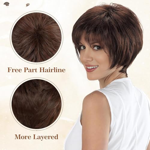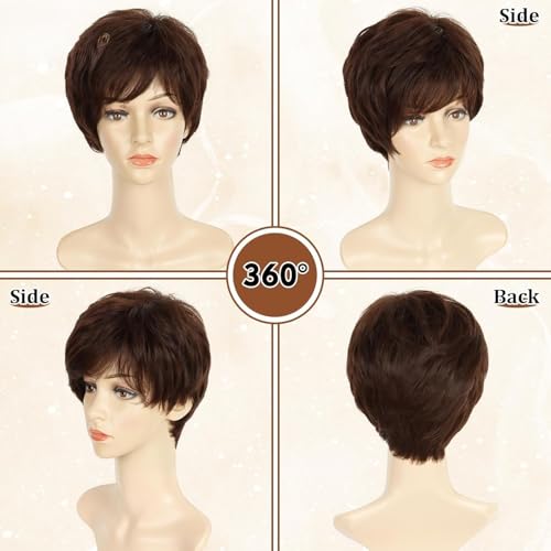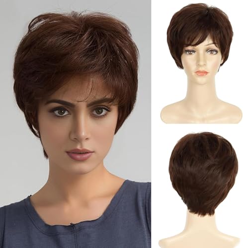 Generic - باروكه شعر مستعار قصيرة تناسب الجنسين, باللون البنى الطبيعى , مصنوعة من الفايبر , اطلالات يومية, حل تساقط الشعر ,تغيير اللوك الخاص بك .ياتى معها بونية للشعر كهدية مميزة