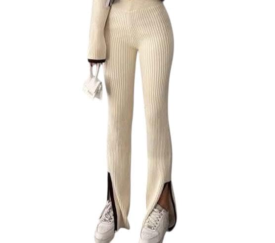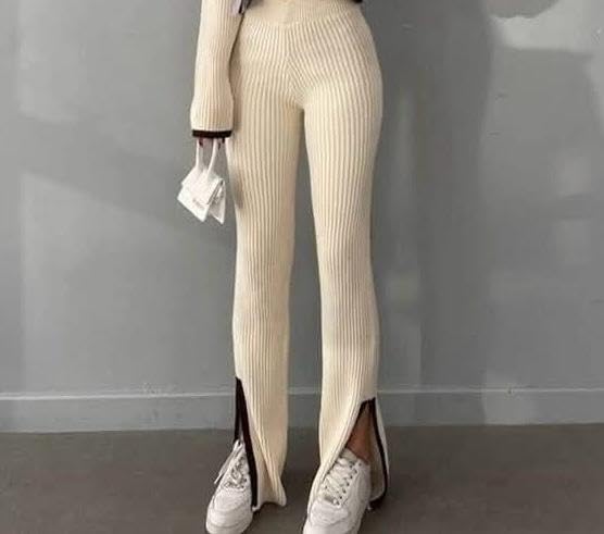 Generic - بنطلون حريمى بيج ريب بفتحة وتصميم انيق ومريح