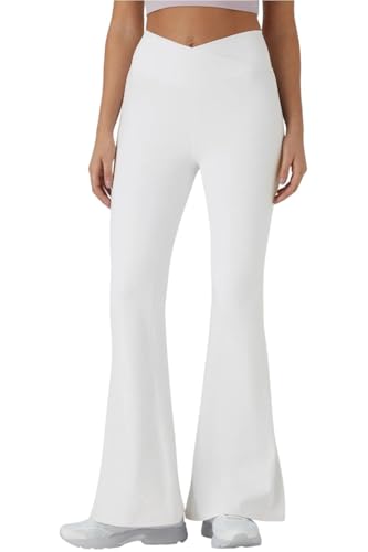 Generic - بنطلون رياضي نسائي واسع و مريح شكل مختلف و مميز من Vicino - خامه ليكرا عالي الجودة - مناسب فى التمارين لون ابيض