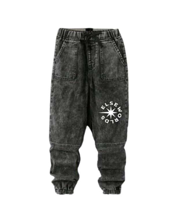 Generic - بنطلون ولادى جينز اسود وبه كتابه