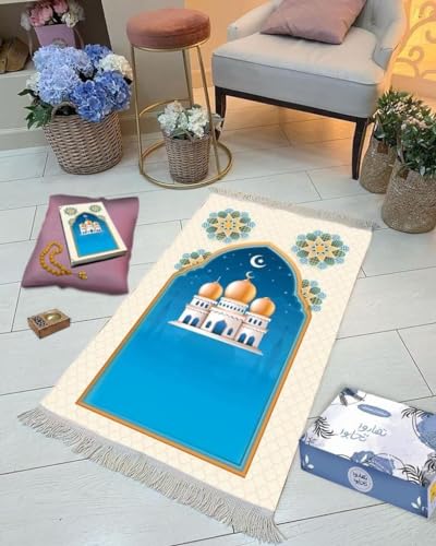 Generic - بوكس رمضان تهادو تحابو ( سجادة قطيفة + مصحف + مبخره + كرت اذكار + سبحة ) (بيج فى ازرق)