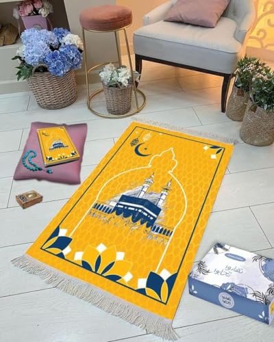 Generic - بوكس رمضان تهادو تحابو ( سجادة قطيفة + مصحف + مبخره + كرت اذكار + سبحة ) (اصفر منجاوى)