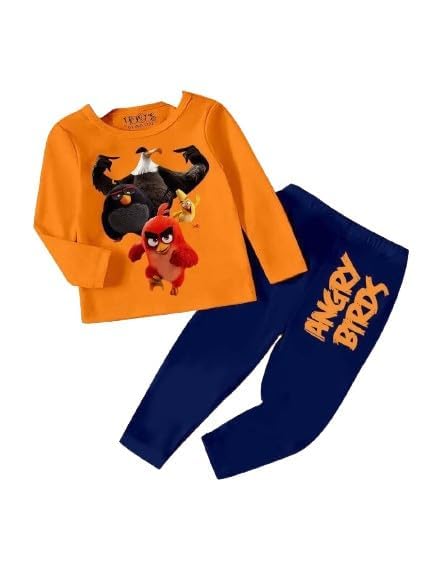 Generic - بيجامه اطفال ولادي من قطعتين تيشرت برتقالي به رسمه وبنطلون كحلي خامه قطن