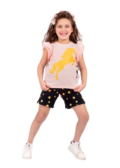 Generic - بيجامه بناتي قطعتيين تيشرت سيمون به رسمه وشورت اسود به نجوم