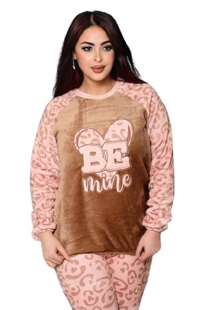 Generic - بيجامه حريمي من قطعتين تيشرت كشمير به رسمه والكمام كشمير في بني وبنطلون كشمير في بني
