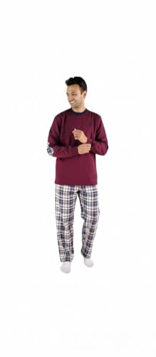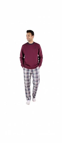 Jet (JET ) - بيجاما رجالي شتوي كم طويل و رقبة مستديرة سادة وبنطلون طويل كاروه - نبيتي