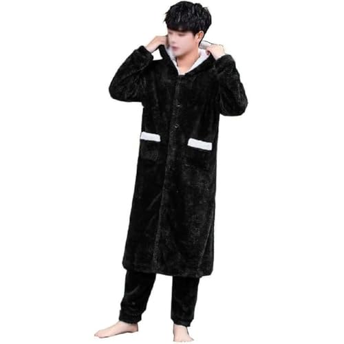 Generic - بيجامة رجالى فرو قطعتين جاكت طويل بزراير وكابيشو وبنطلون