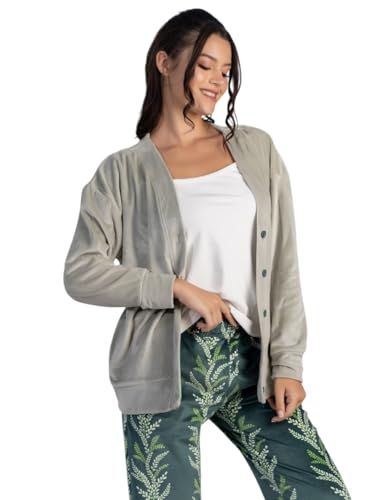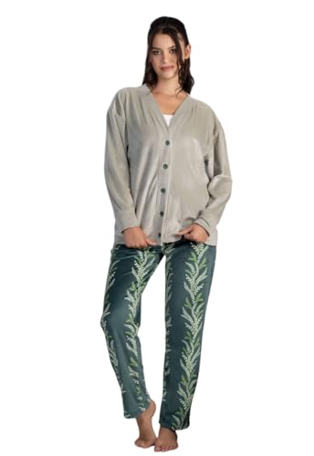 Generic - بيجامة شتوي قطيفة توب حمالات مطعم بدانتيلا سادة و جاكيت قصير بأزرار سادة و بنطلون منقوش للنساء