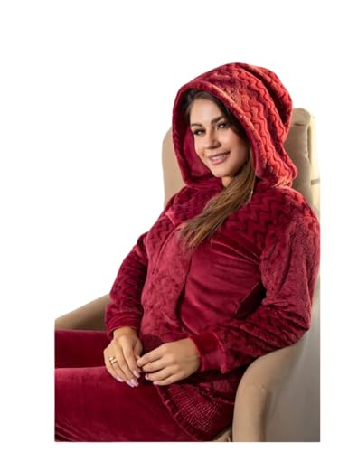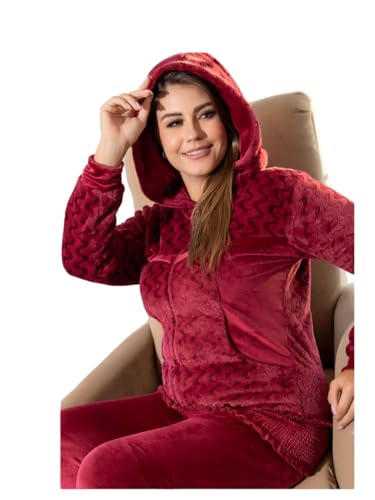 Generic - بيجامة شتوي قطيفة جاكيت كابتشو بتصميم سوستة و جيوب و بنطلون سادة و لكلوك سادة للنساء