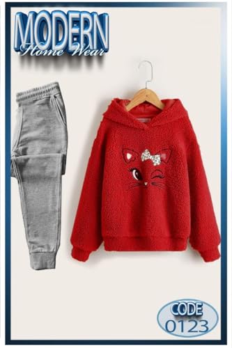 Generic - بيجامه فرو وبنطلوب ميلتون مقاس واحد، احمر، ياقة عالية