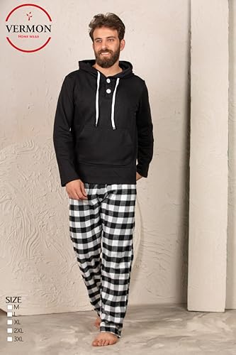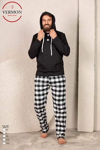 Generic - بيجامه كاروهات شتوى اسود مربع صغير