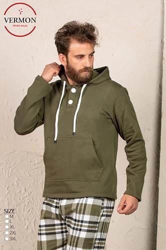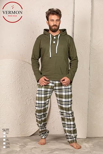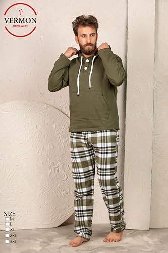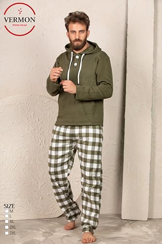 Generic - بيجامه كاروهات شتوى زيتى مربع كبير