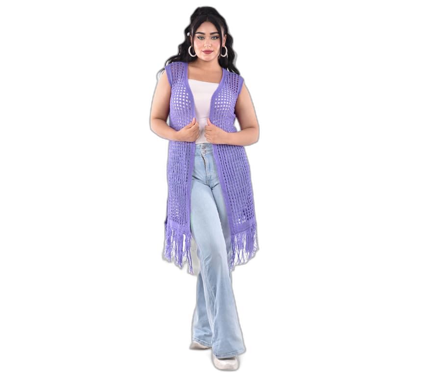 Generic - جاكت شبك صيفى طويل - لون موف فاتح، للنساء
