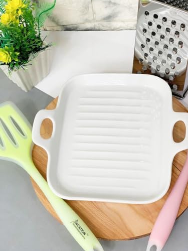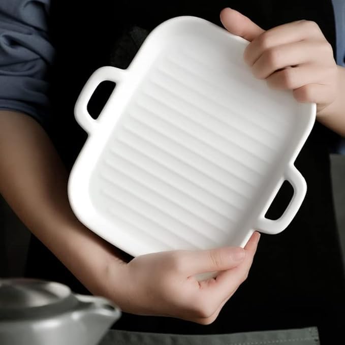 Generic - جريل مسطح من البورسلين الحرارى للتسخين و تقديم الطعام مباشرة , امن للاستخدام فى المايكروويف , يدين، أبيض