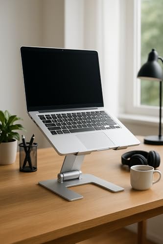 Generic - حامل تابلت أو لاب توب معدني قابل للطي والتعديل – مناسب لمقاسات متعددة – دعم تهوية وزاوية مريحة للاستخدام