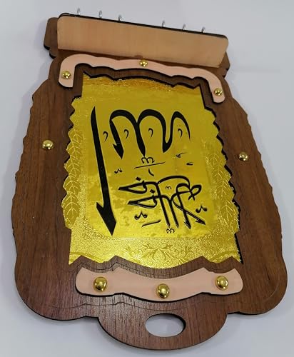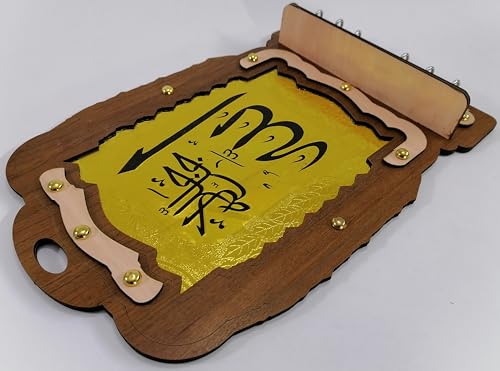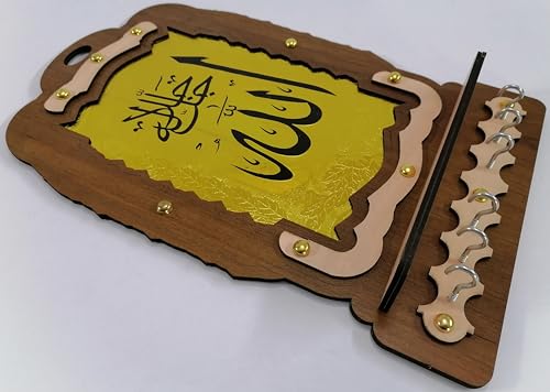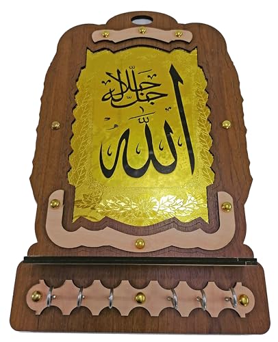 Generic - علاقة و عليقة مفاتيح حامل خشب لون روز وبني غامق ونحاسي اسلامي لفظ الجلاله الله جل جلاله