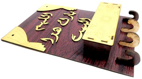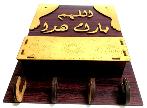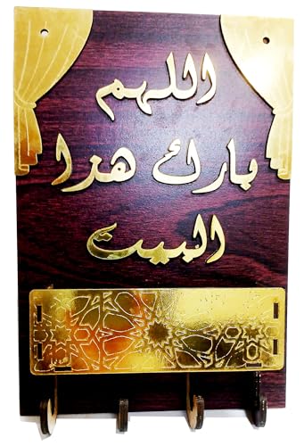 Generic - حامل وشماعة وعليقة مفاتيح خشب عليها كتابة بارزة (اللهم بارك هذا البيت) لون أحمر لون ذهبي مصنوع من الخشب