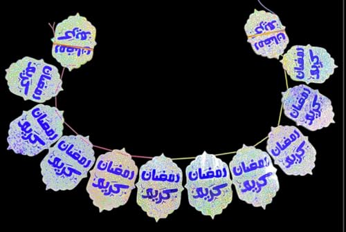 Generic - حبل زينة رمضان فاخر بفوانيس ديسكو متاليك مبطن لباد ازرق في فضي