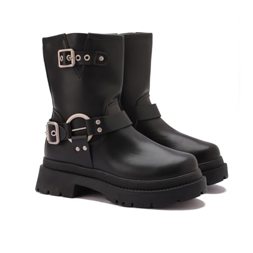 Generic - بوت جلد مستورد عصري بأحزمة معدنية متوفر بمختلف الالوان و المقاسات