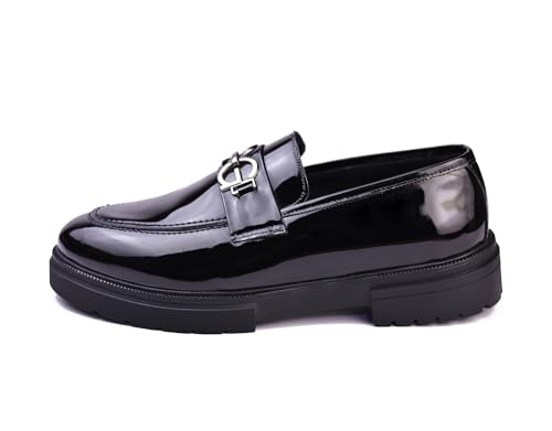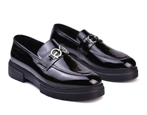 Generic - شوز كلاسيكي فرنيه للرجال مصنوع من اسكاى عالى الجودة بلون اسود جذاب ونعل مقاوم للانزلاق بدون رباط