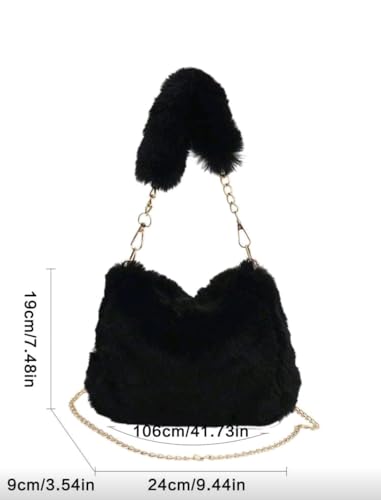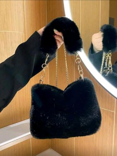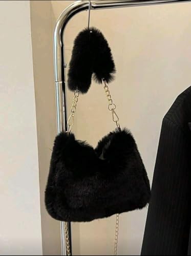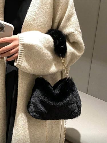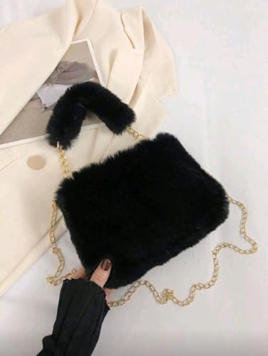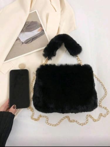Generic - حقيبة كتف نسائية صغيرة انيقة بسلسلة من الفرو، حقيبة مربعة صغيرة بتصميم كوري لخريف وشتاء