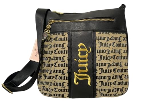 Generic - شنطة كروس بودي نسائية عصرية وأنيقة من القماش المنسوج والجلد الصناعي، تتميز بشعار ذهبي بارز وتفاصيل زخرفية، مع حزام عريض قابل للتعديل.