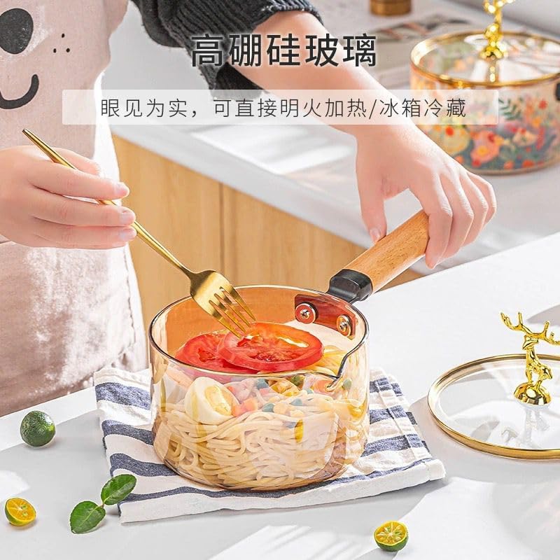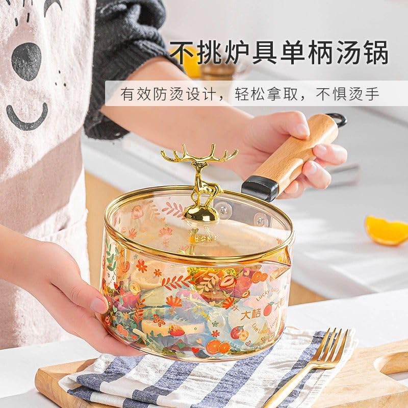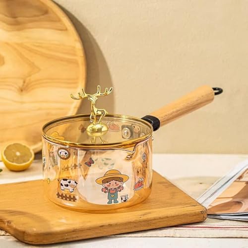 Generic - حلة زجاج عسلي توضع علي النار مباشره لتقديم الطعام علي السفرة بشكل شيك بغطاء غزالة ويد خشب قابلة للفك والتركيب