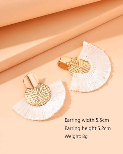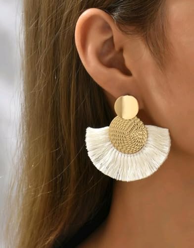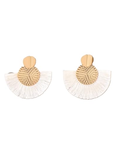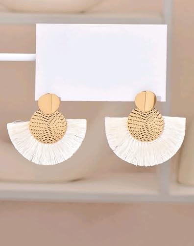 Generic - حلق نسائى اقراط نسائية متدلية على شكل شرابة بتصميم بوهو صيفي اللون: ذهبي وابيض