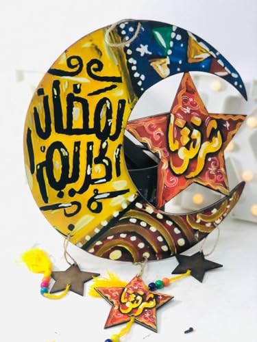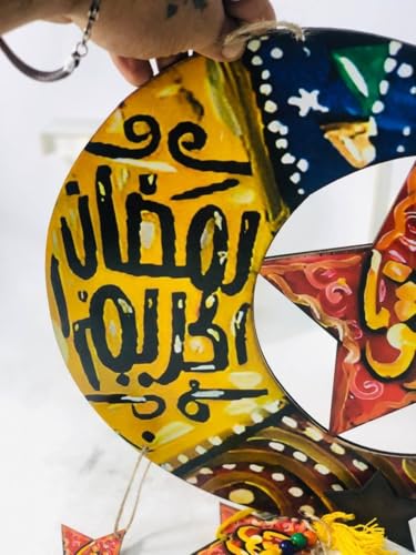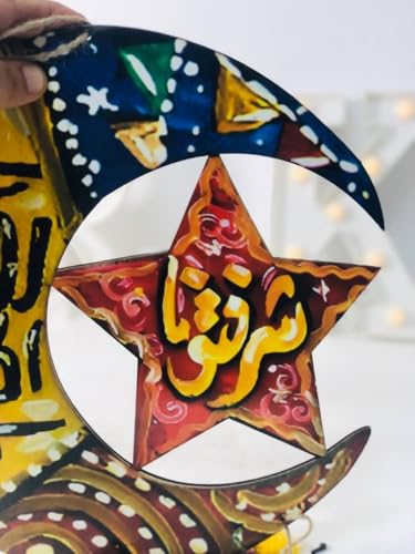 Generic - دلاية تعليقة بزينة رمضان على شكل هلال ونجمة من الخشب، تتميز بالدقة في التصميم و التقطيع الليزر، بحجم 65 سم