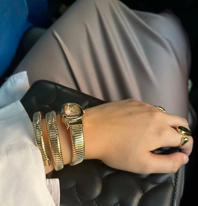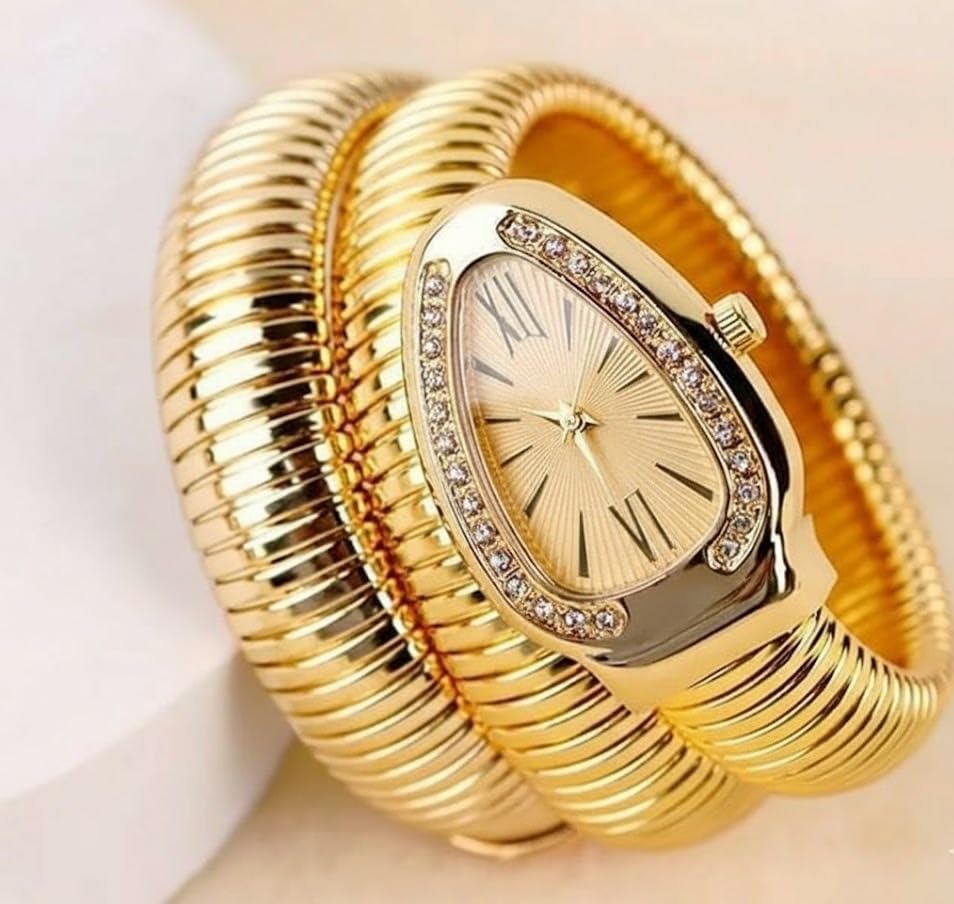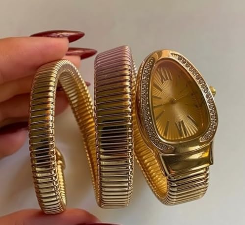 Generic - ساعة براس ثعبان (ذهبي) مرصع بالماس من دبي في الشرق الأوسط، ساعة عصرية شخصية، سوار من الفولاذ غير قابل للصدأ