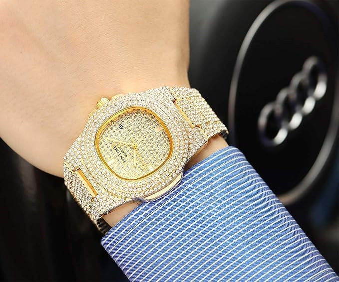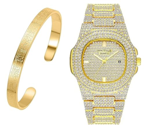 Generic - ساعة فاخرة للرجال/النساء للجنسين + اسوره محفور عليها ايه الكرسي من الاستانلس مقوما للصدا اسوره تحميك وتحافظ عليك، ساعة يد مستطيلة كريستالية كوارتز، لون ذهبي، ساعة كوارتز