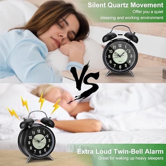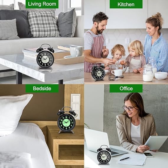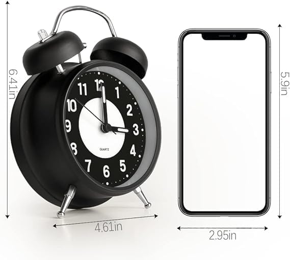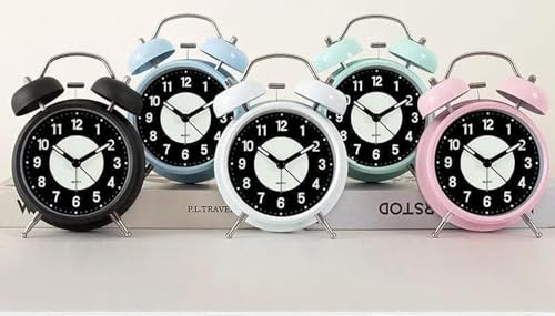 Generic - ساعة منبه بجرس مزدوج بصوت عال مع اضاءة خلفية لغرفة النوم لجانب السرير والمكتب والمدرسة والمنزل بولي فينيل كلورايد PVC متعدد الألوان