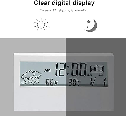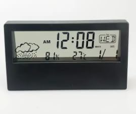 Generic - ساعة منبه رقمية الكترونية متعددة الوظائف مع عرض لدرجة الحرارة والتاريخ والمكتب المنزلي أسود بولي كربونات PC