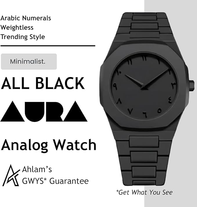 Generic - ساعة يد اول اسود | ساعة اورا مينيماليست انالوج | ارقام عربية | خفيفة الوزن | عصرية!