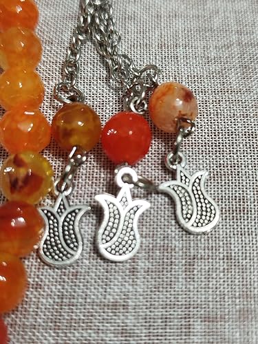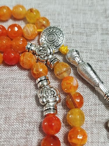 Generic - سبحه من العقيق الطبيعى مقاس 8 ملى 100 حبه مضلعه الفواصل كلها مطليه نيكل ضد الصداء اللون برتقالى فاتح وغامق