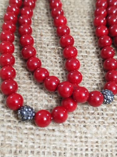 Generic - سبحه من اللولو اليابانى لا يفقد الطلاء فواصل ماركيز دلايه لؤلؤ طبيعى مرصع بالمركيز الاسود 99 حبه تصلح عقد قيم اللون احمر