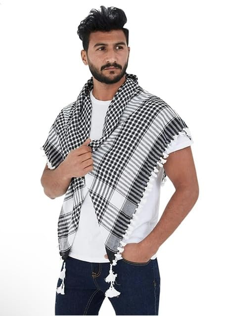 Generic - سكارف شماغ عربي منقوش وشاح وشال للجنسين، اسود/ابيض