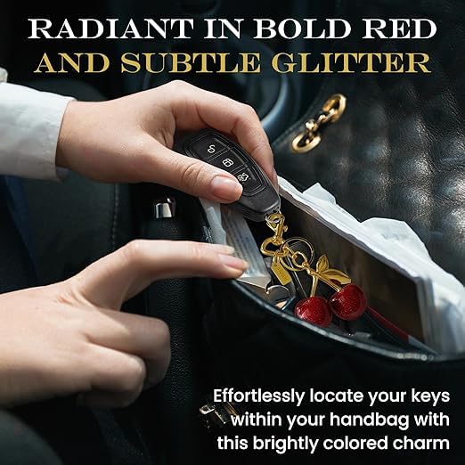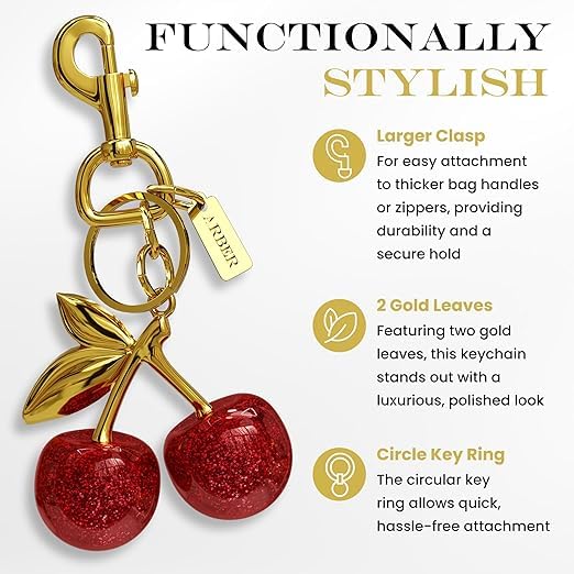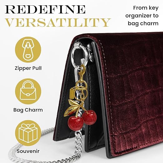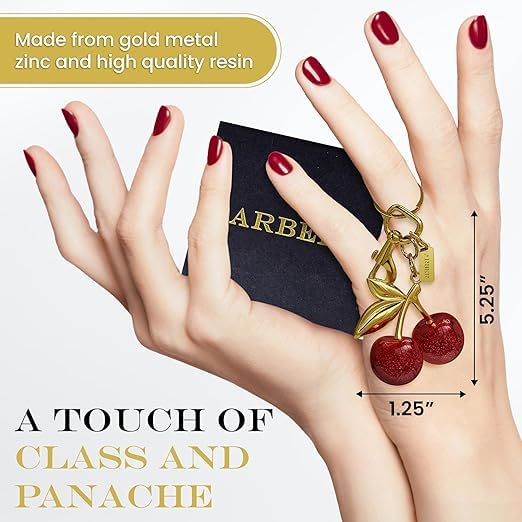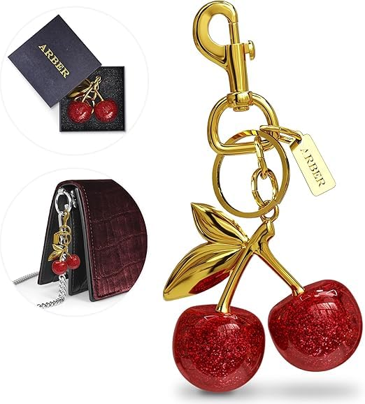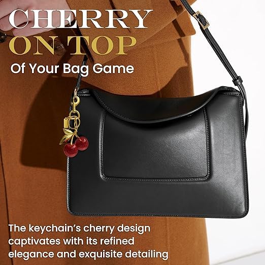 Generic - سلسلة مفاتيح للمحفظة - تعليقة حقيبة الكرز الواقعية مع مشبك كبير، دلايات حقيبة لطيفة جذع ذهبي - سلسلة اكسسوارات حقيبة متعددة الاستخدامات، دلايات جميلة على شكل كرز احمر لهدايا شنط اليد