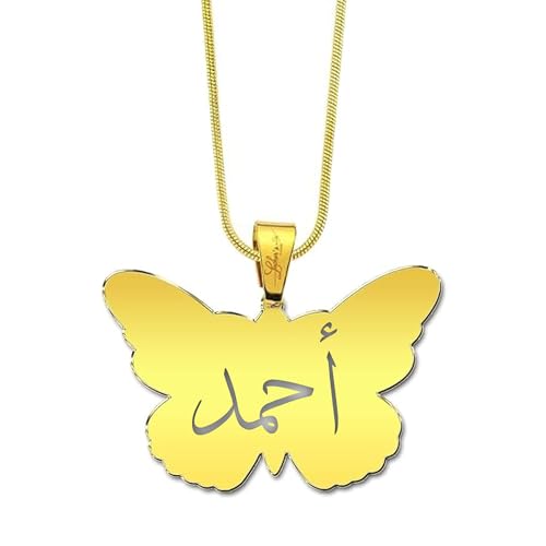 BJS - سلسلة وقلاده باسم احمد شكل الفراشه مطليه بالذهب للمحافظه عليها